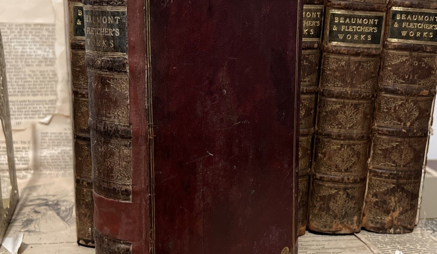 The Works of Mr Francis Beaumont and Mr John Fletcher, printed for Jacob Tonson at Shakespeare’s Head (The Strand, London) in 1711 in 7 uniformly bound full calf volumes. The highly scarce first edition of these works in the original full calf bindings.