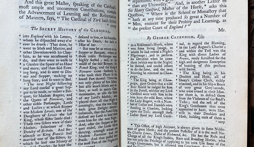 The History of the Life and Times of Cardinal Wolsey, Prime Minister to King Henry VIII. Volumes Two, Three, and Four. London; Printed by J. Purser, for the Author; MDCCXLIII (1743).