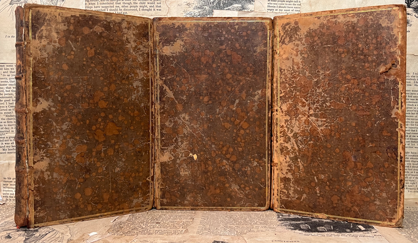 Text blocks very clean with light toning and very sporadic very minor foxing. Some wear to the spines, most prominently on headcaps and tails. Lacking tooled labels. All boards attached with broken joints and hinges. Minors scuffing, rubbing, scratches and marks on boards. Shelf wear. Page edges dulled. Bookplates attached on front pastedown in all volumes. Endpapers prominently toned. Frontispieces toned with minor foxing. Torn corner of page 225/226 in volume two, which only very partially affects the text on page 225 (pictured). Very small tear to the plate facing page ??8 in volume three (pictured - last photograph).
