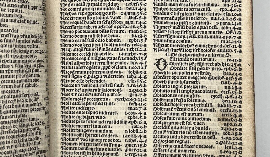 Biblia Sacra: Integrum Utriusq Testamenti Corpus Coplectens... Parisiis [Paris]: Yolande Bonhomme, vidua Thielmanni Kerver, [colophon reads] MDXXXIIII. Octavo iudus Januarij [1534].
