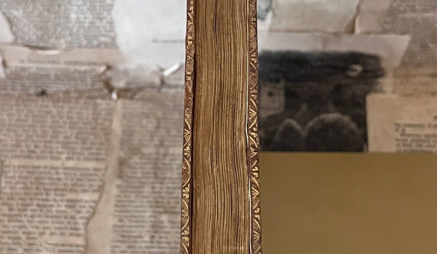 Text block very clean with light toning and very sporadic very minor marks. Very minor wear to spine with very minor loss of gilt, still shows very well. Minor damage to headcap and minor wear tail (bottom of the tail). Both boards attached. Front joint and hinge broken but attached with binding string. Rear hinge broken with partial breaks in the rear joint. Minor marks, rubbing, and scratches on boards. Minor damage to corners. Shelf wear. Bookplate attached to front pastedown. Discolouration on the edges, minor pencil mark, and very minor marks on the front pastedown. Light discolouration and very minor marks on the title page. Discolouration to the edges and very minor marks to rear pastedown.