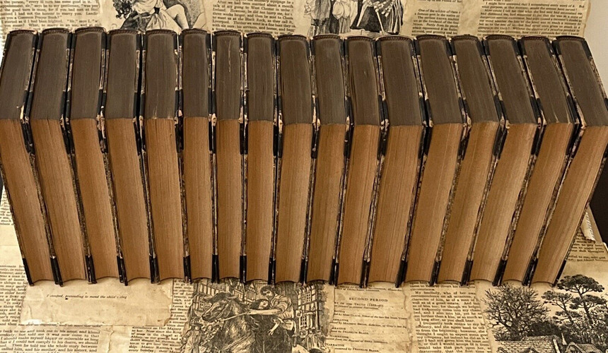 Spines rubbed with some superficial scratches and dust, mostly to extremities, also with a painted letter ‘P’ to each volume’s spine, though relatively unobtrusive. All volumes with a delightful red morocco tooled label and attractive gilt lettering and details. Boards rubbed as typical but not significantly. All hinges and joints VG+/NF/Fine with all boards securely attached and all bindings firm. All volumes collated as complete to include advertisements, frontispieces, etc where called for. A highly attractive scarce set.