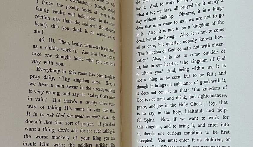 The Crown of Wild Olive; Four Lectures on Industry and War by John Ruskin, LL.D. Ninth edition. Published by George Allen, Sunnyside, Orpington, and Charing Cross Road, London, in 1895. Printed by Ballantyne, Hanson & Co. in Edinburgh and London.