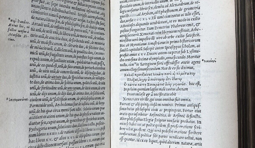 Diogenis Laertii De Vita Et Mori Bus Philosophorum Libri X. Cum Indice Locupletißimo. Apud Ser Gryphium Lugduni. 1551.