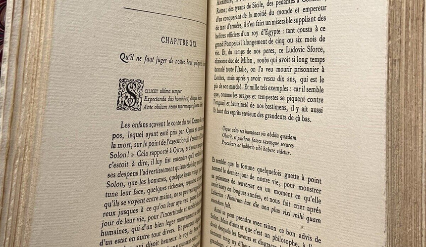 Montaigne's Essays; Reprinted on the Original Edition of 1588 With Notes, Glossary and Index; By Messrs. H. Motheau and D. Jouaust; And Preceded By A Note By M. S. de Sacy of the French Academy; Portrait Etched By Gaucherel. 4 Volumes. Paris, 1873.