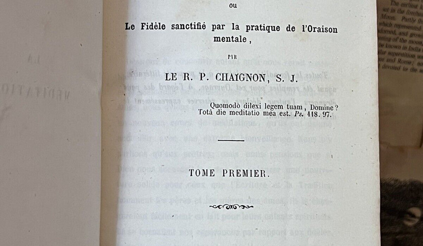 La Méditation ou Le Fidéle Sanctifié Par la Pratique de L'Oraison Mentale, Par Le R. P. Chaignon, S.J. Tome I & II. Angers, Libraries de Lainé Frères, Rue Saint-Laud. Paris, CII, Blériot, Libraire, 55, Quai des Augustins. 1863.