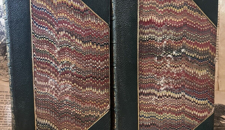 Text block extremely clean with very light toning and very sporadic very minor foxing. Very minor rubbing on spines. All boards securely attached. Very minor scuffing and rubbing on boards. Very minor dulling to page edges. Shelf wear. Library stamp on front pastedown in both volumes. Dulled library stamp on preliminary page in both volumes. Minor foxing on half title in volume one. Very minor foxing on half title in volume two and both title pages.