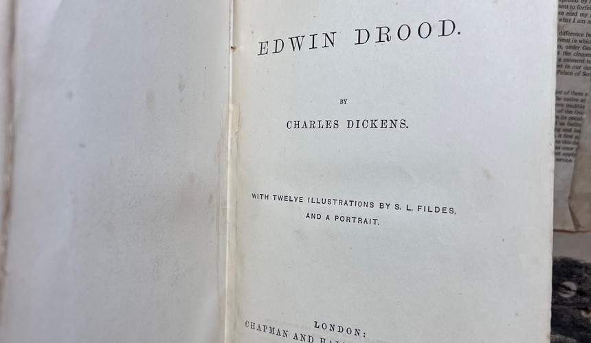 The Mystery of Edwin Drood by Charles Dickens with twelve illustrations by S.L. Fildes, and a portrait. London: Chapman and Hall, 1870. FIRST EDITION FIRST IMPRESSION.