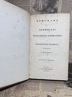 Sophoclis Tragodeiae Superstites Et Deperditarum Fragmenta. Ex Recensione G. Dindorfii. Editio Secunda Emendatior. Oxonii; E. Typographeo Academico; MDCCCXLIX.