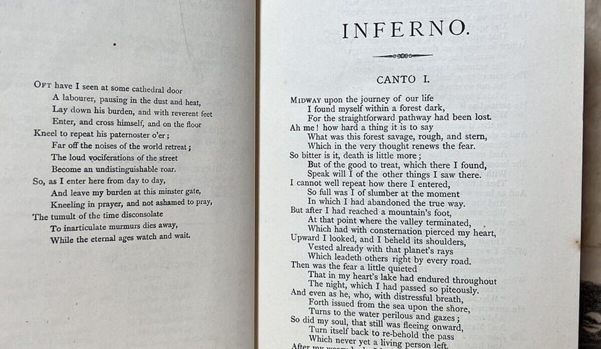 A beautiful copy of Dante’s Divine Comedy quarter bound in leather.