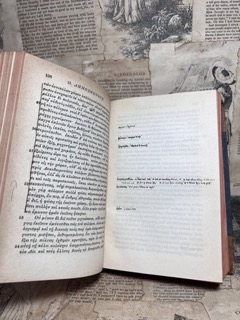Text block in good condition with some toning and very sporadic very minor foxing. Blanks bound between leafs. Minor wear to spines with some light cracking to the leather. Tooled labels present. Some rubbing and very minor tears to headcaps. All boards securely attached with minor wear to joints and hinges. Shelf wear. Minor dulling to page edges. Some foxing and small pencil inscriptions on front pastedown in all volumes. Title pages toned with minor discolouration to the corners (pictured). Pen and pencil inscriptions throughout placed on blanks and in margins, and with some underlining (does not affect text legibility).