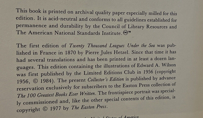 Twenty Thousand Leagues Under the Sea by Jules Verne published by Easton Press in full leather. Illustrated.