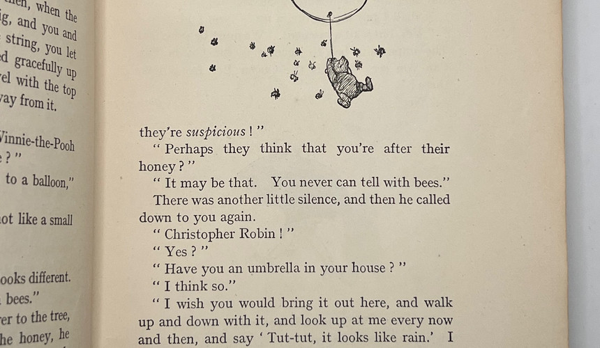 A beautiful example of this scarce first edition of the children's classic, Winnie the Pooh.