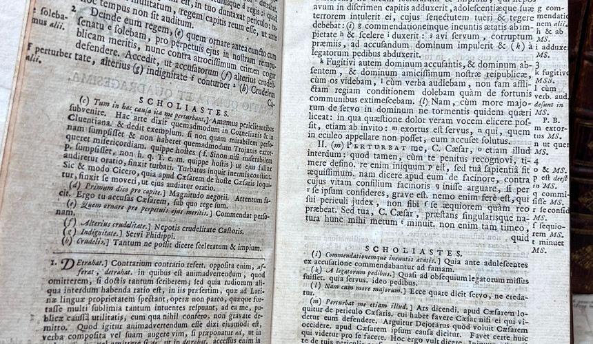 The Works of Marcus Tullius Cicero Which Remain, Everything, with Asconius and the Old Scholars And of the whole note P. Victorii, J. Camerarii, F. Ursini, & Selectis P. Manutii, D. Lambini, J. Gulielmii, J. Grunteri, J. F. & J. Gronoviorum, J. G. Graevii, & Of many others. Isaac Verburgius Collected, Arranged, Revised, Variant Readings Everywhere He Appended, Pages of the Aldina Edition, Which Nizolius & Others Followed, Together With Alexander Scotus Sections, Corresponding to the Apparatus of Latin Speech, Carefully Marked for the Convenience of Users Everywhere. With the Most Accurate Indexes, Significantly Increased. Amsterdam; At Rod. & Ger. Wetsenios; MDCCXXIV (1724).